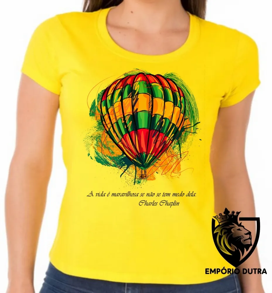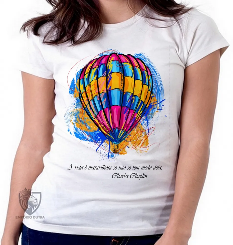 Baby look blusa Feminina balão frase Charles Chaplin Imagem