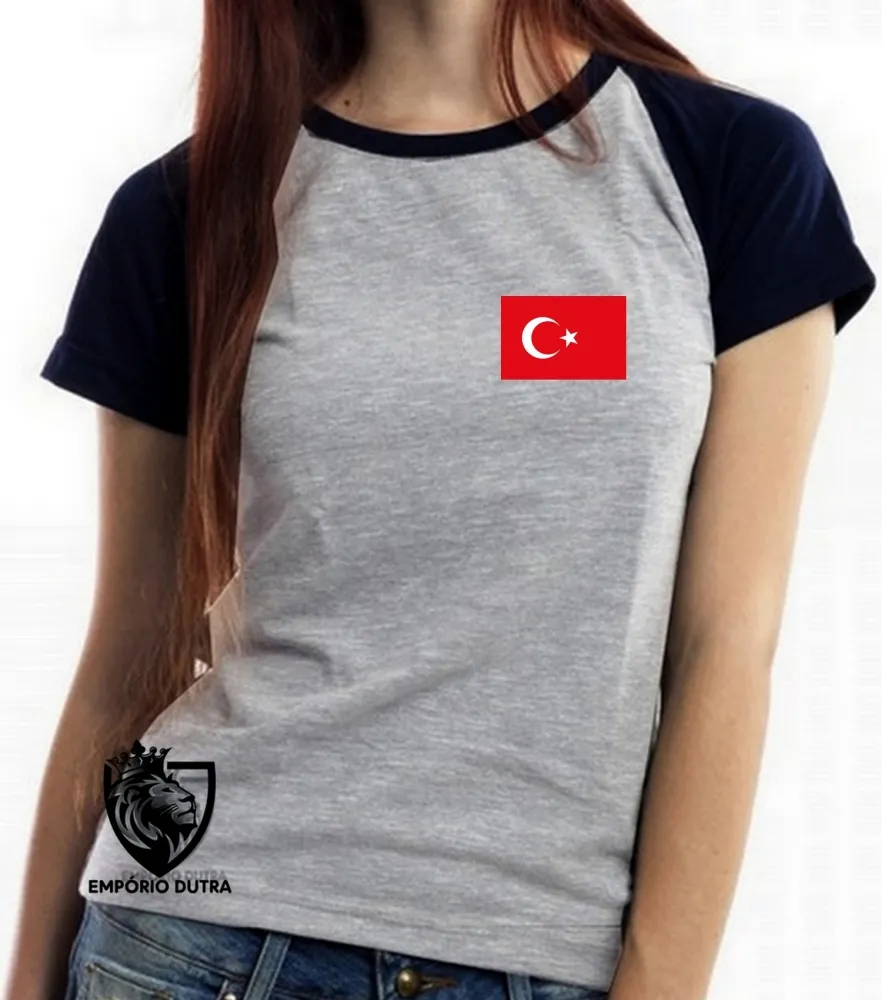 Baby look blusa Feminina bandeira Turquia oriente medio