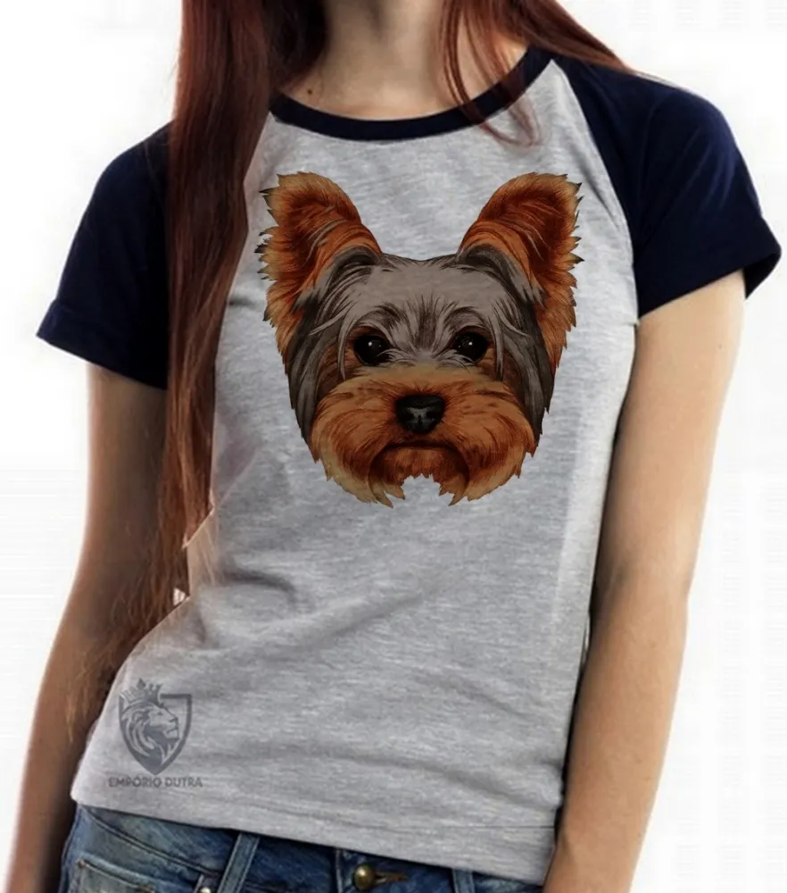 Baby look blusa feminina cachorro cão dog Yorkshire carinha york
