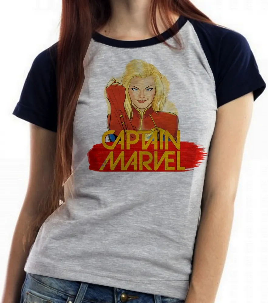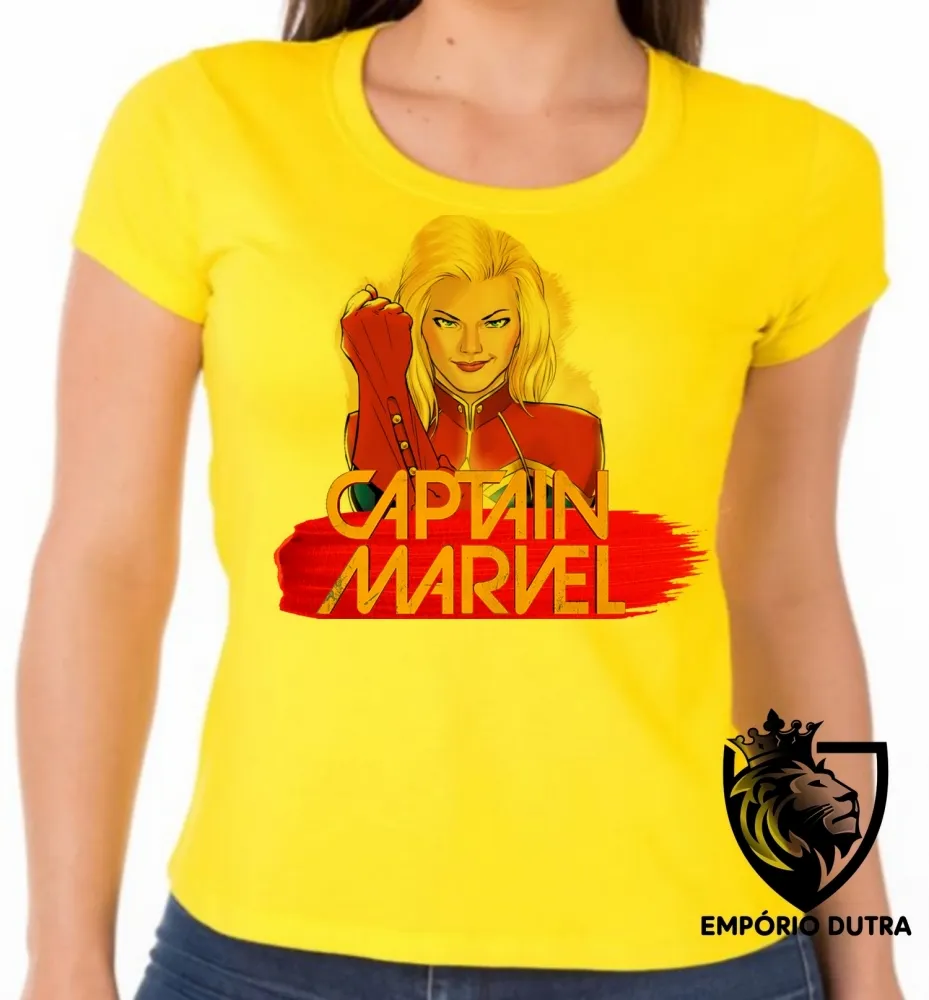 Baby look blusa feminina Capitã Marvel heroi feminina