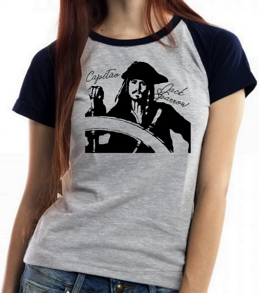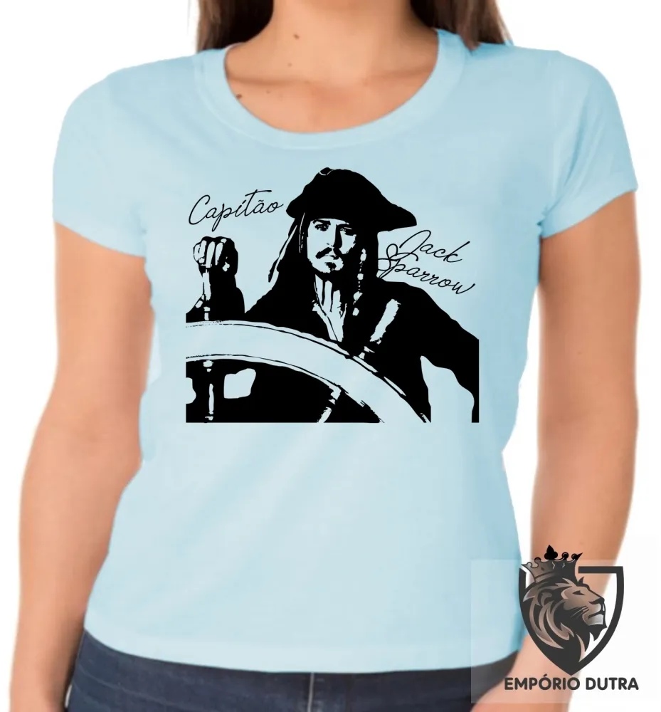 Baby look blusa Feminina Capitão Jack Sparrow pirata caribe