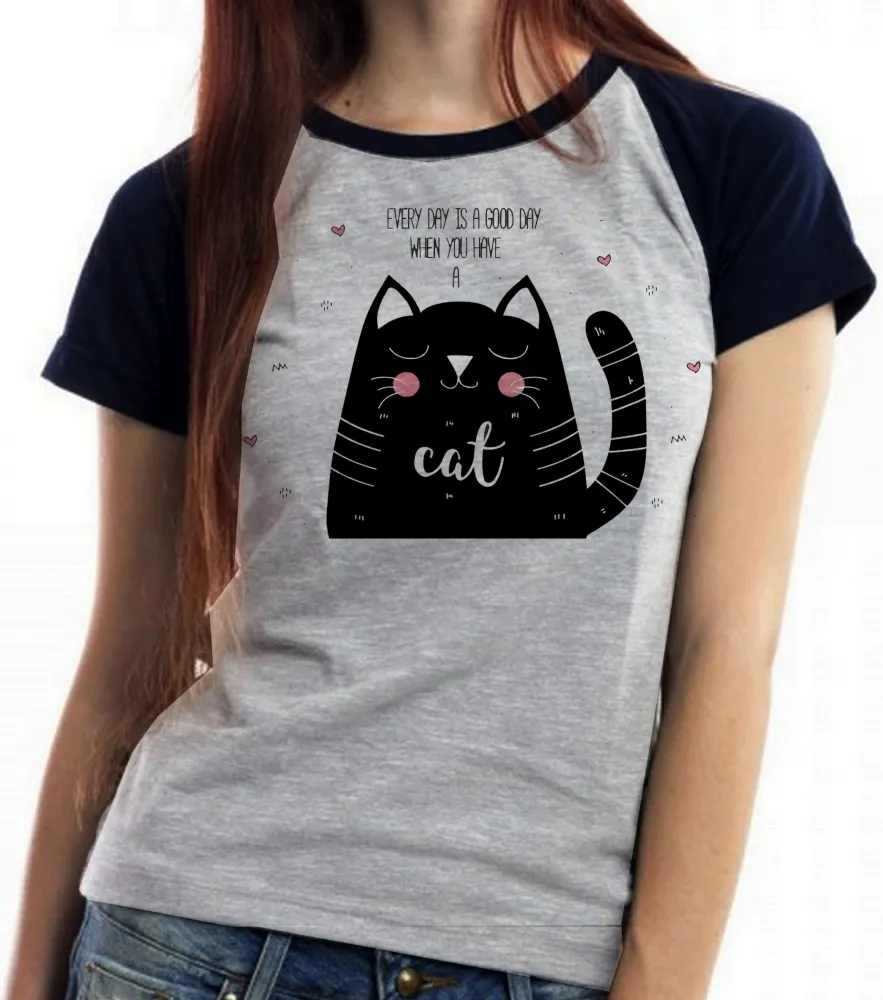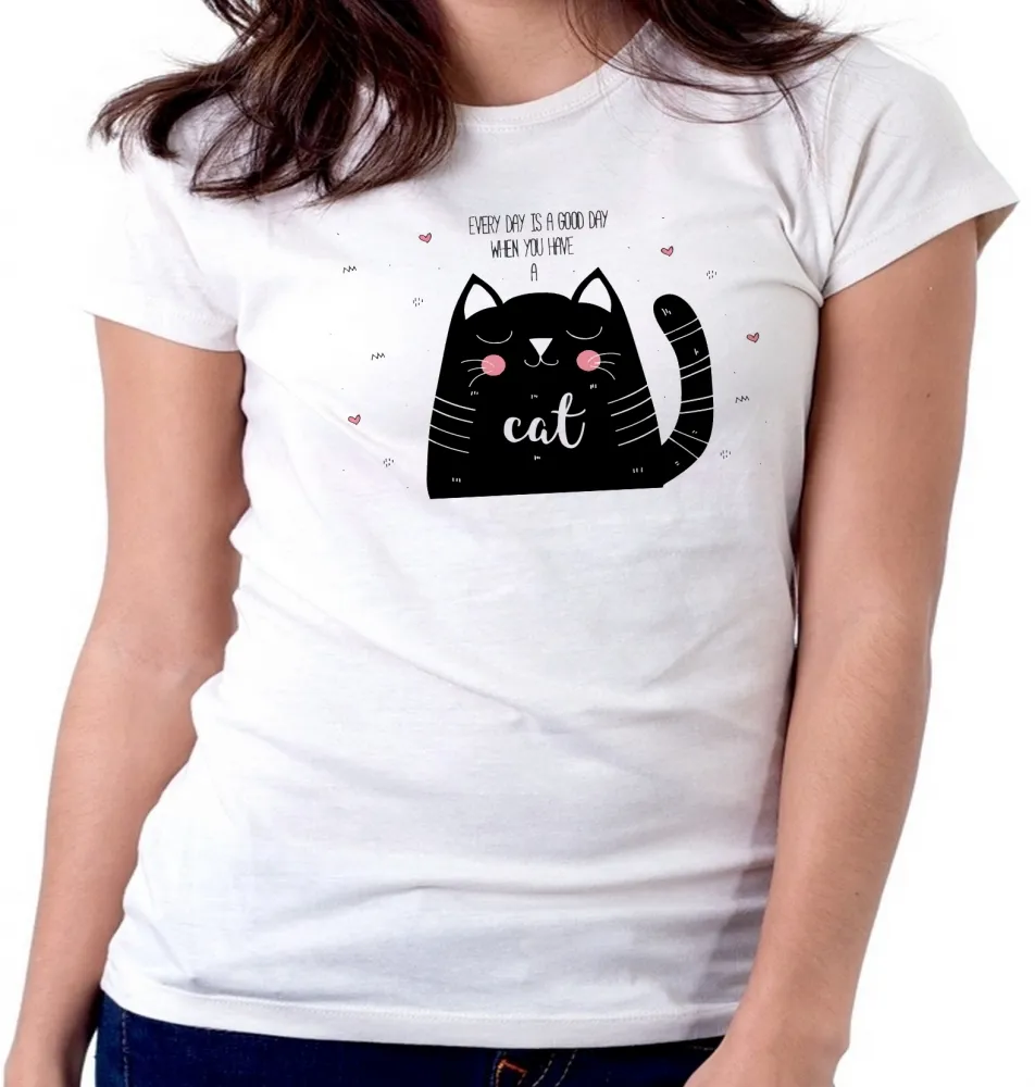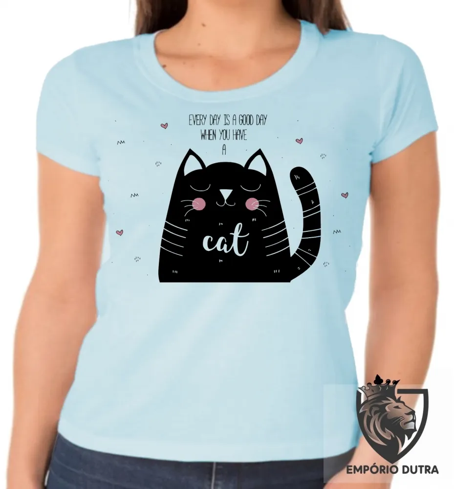 Baby look blusa feminina Every day is a good gato cat Imagem