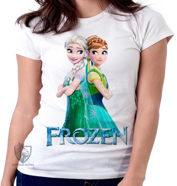 Baby look blusa feminina Frozen Anna Elsa costas Imagem