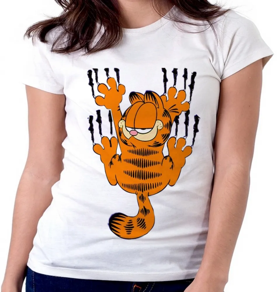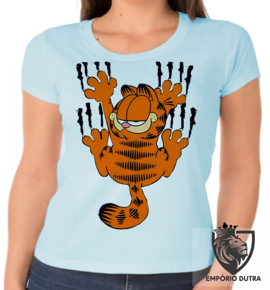 Baby look blusa feminina Garfield arranhar gato cat gatinho