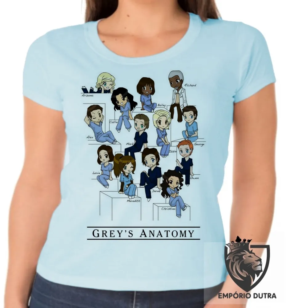 Baby look blusa Feminina Greys Anatomy turma seriado
