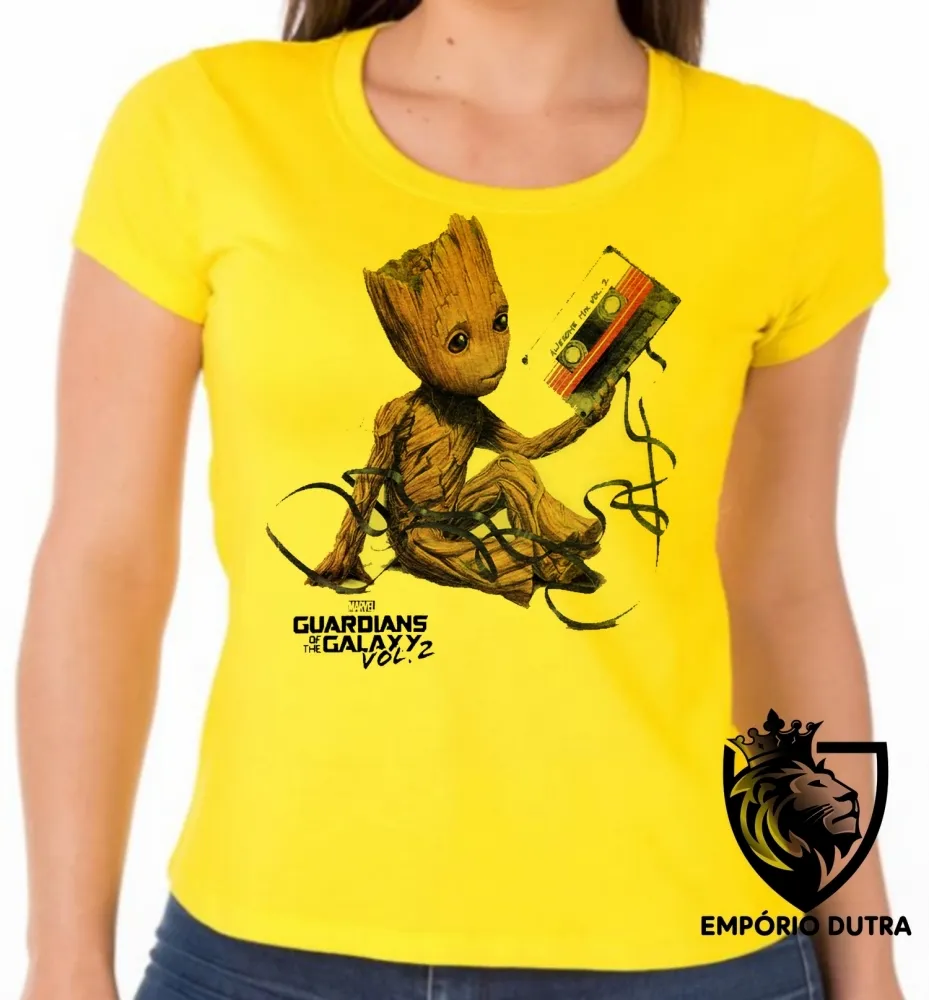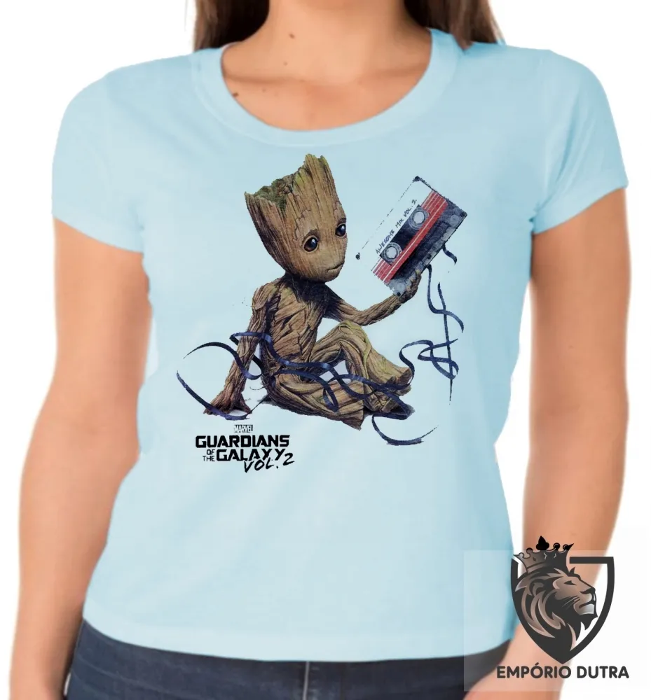 Baby look blusa feminina Guardiões da Galáxia Groot fita
