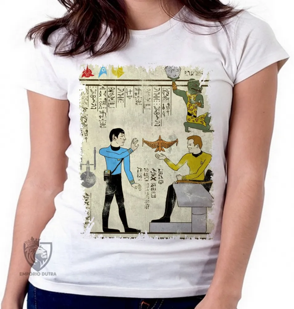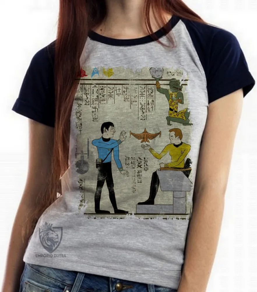 Baby look blusa Feminina hieróglifos Star Trek Imagem