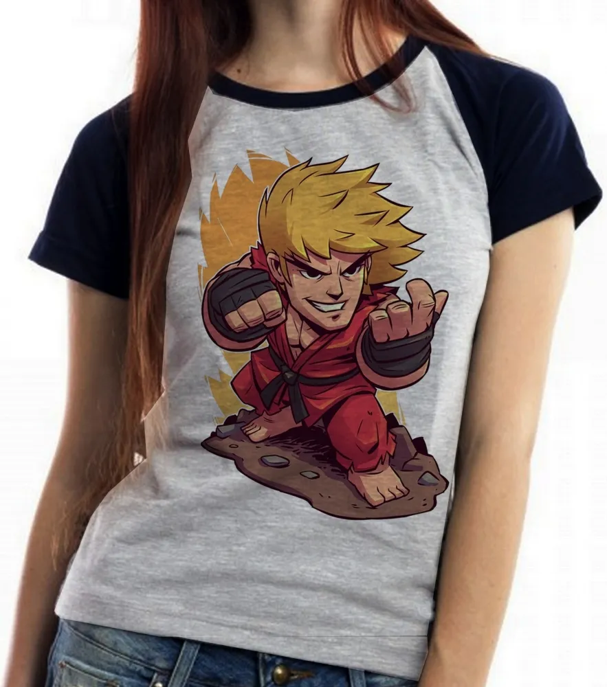 Baby look blusa Feminina ken street fighter jogo game Imagem