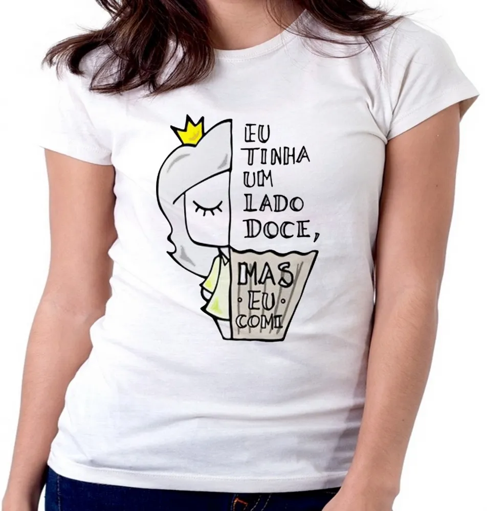 Baby look blusa feminina Lado doce comi cupcake Imagem