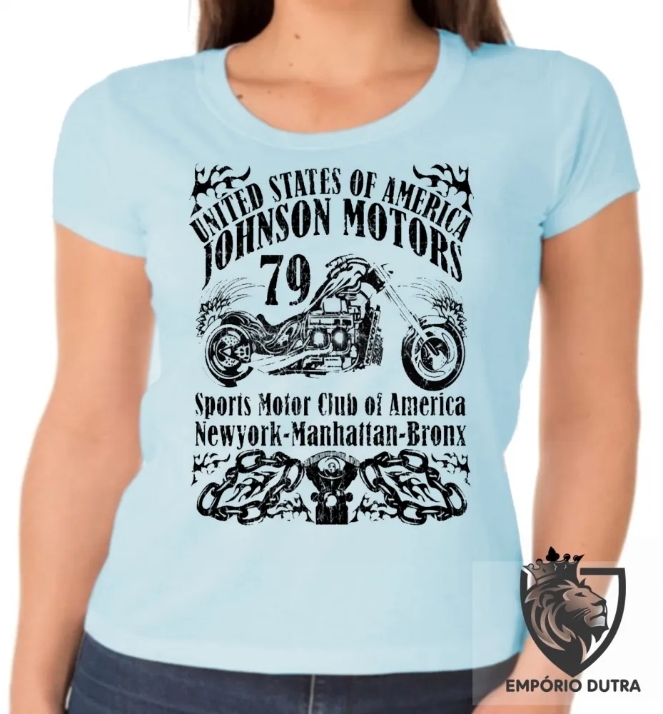 Baby look blusa Feminina Moto Johnson Motors 79 USA harley davidson