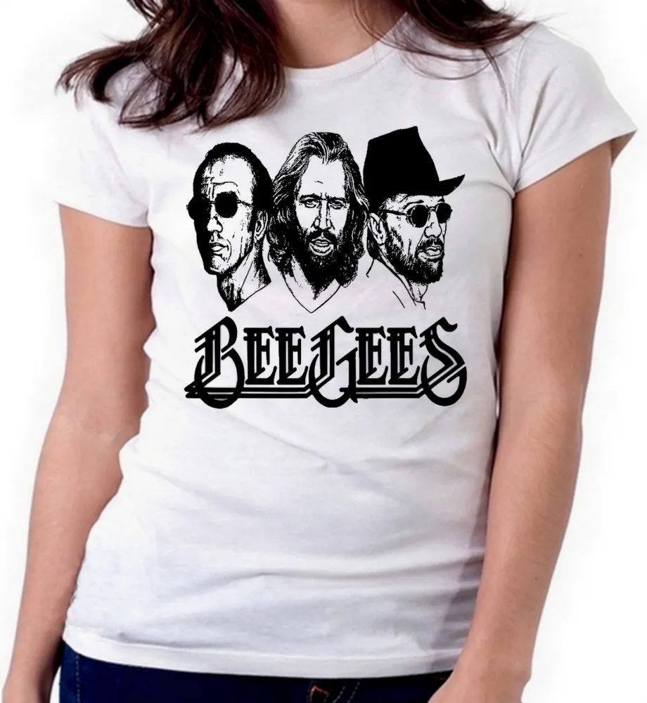 Baby look blusa feminina ou Camiseta Beegees banda rock antiga