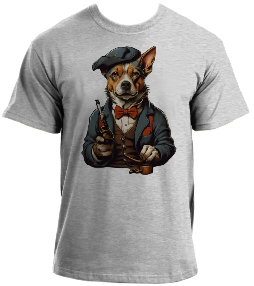 Baby look blusa feminina ou Camiseta Cachorro detetive fumando Imagem