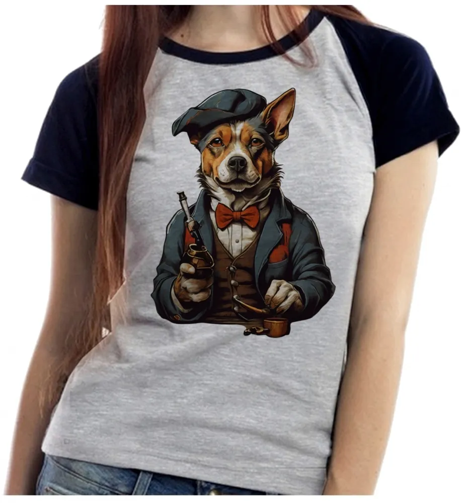 Baby look blusa feminina ou Camiseta Cachorro detetive fumando