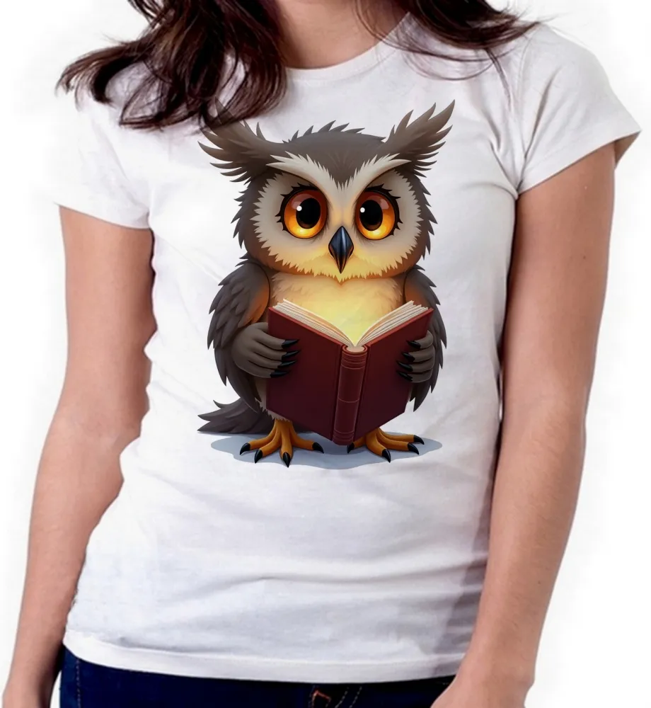Baby look blusa feminina ou Camiseta coruja leitura intelectual livro