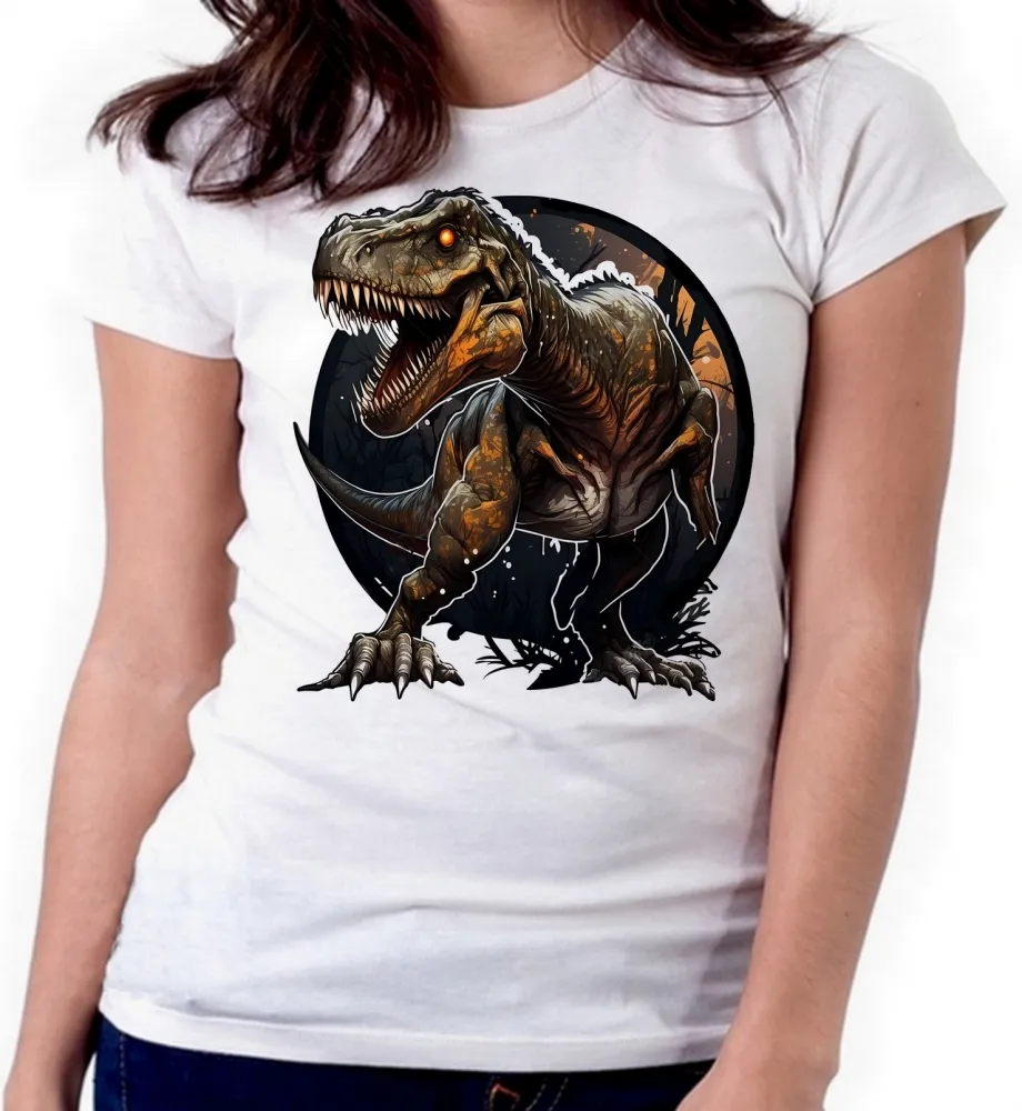 Baby look blusa feminina ou Camiseta dinossauro Rex Jurassic