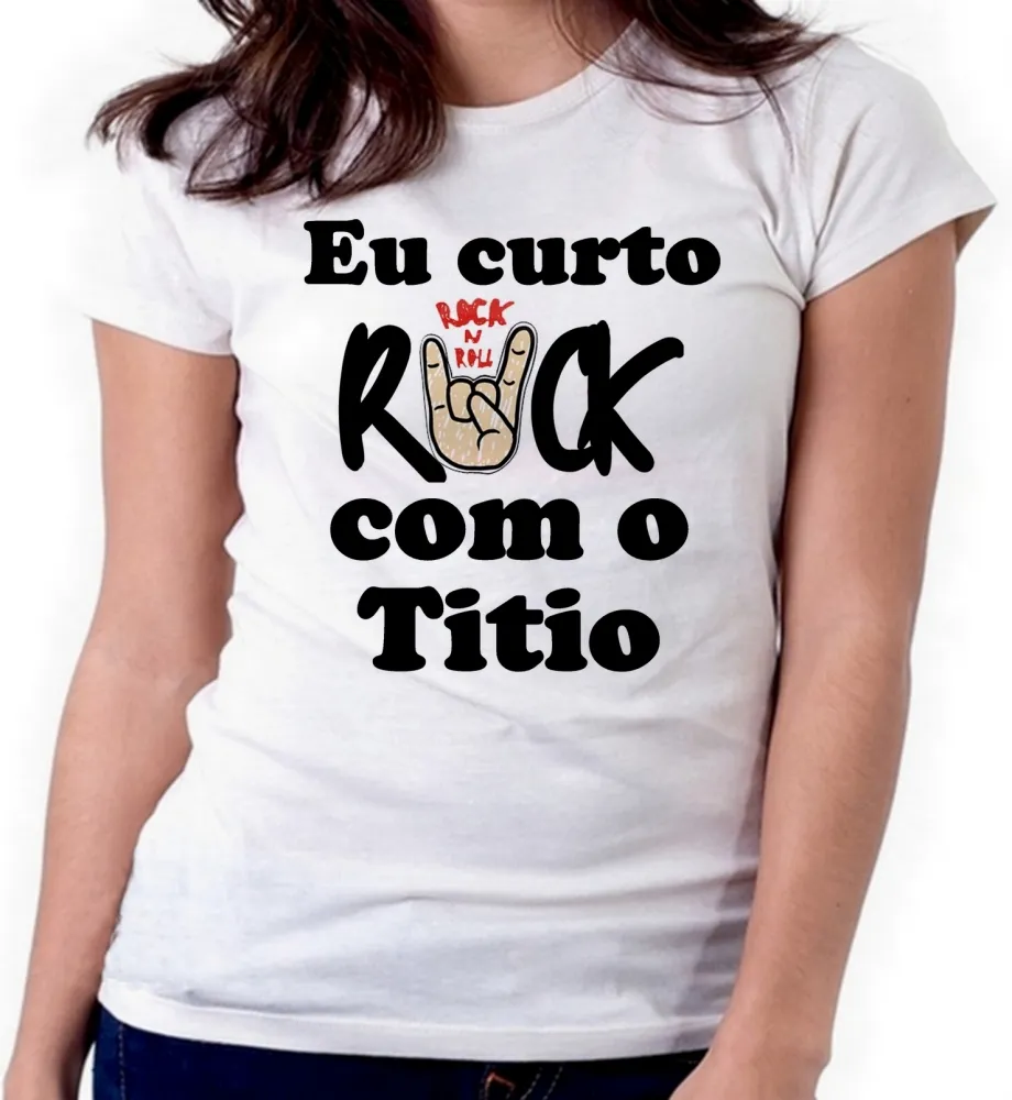 Baby look blusa feminina ou Camiseta Eu curto rock com tio Titio