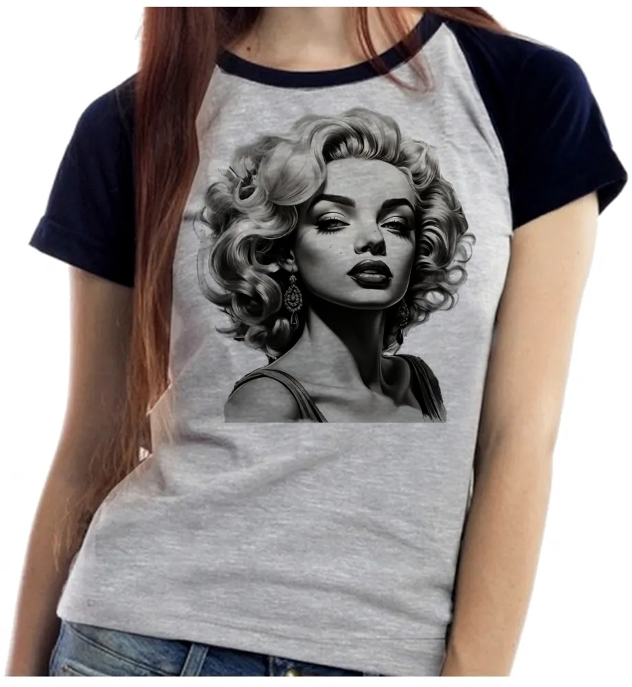 Baby look blusa feminina ou Camiseta marilyn monroe preto e branco