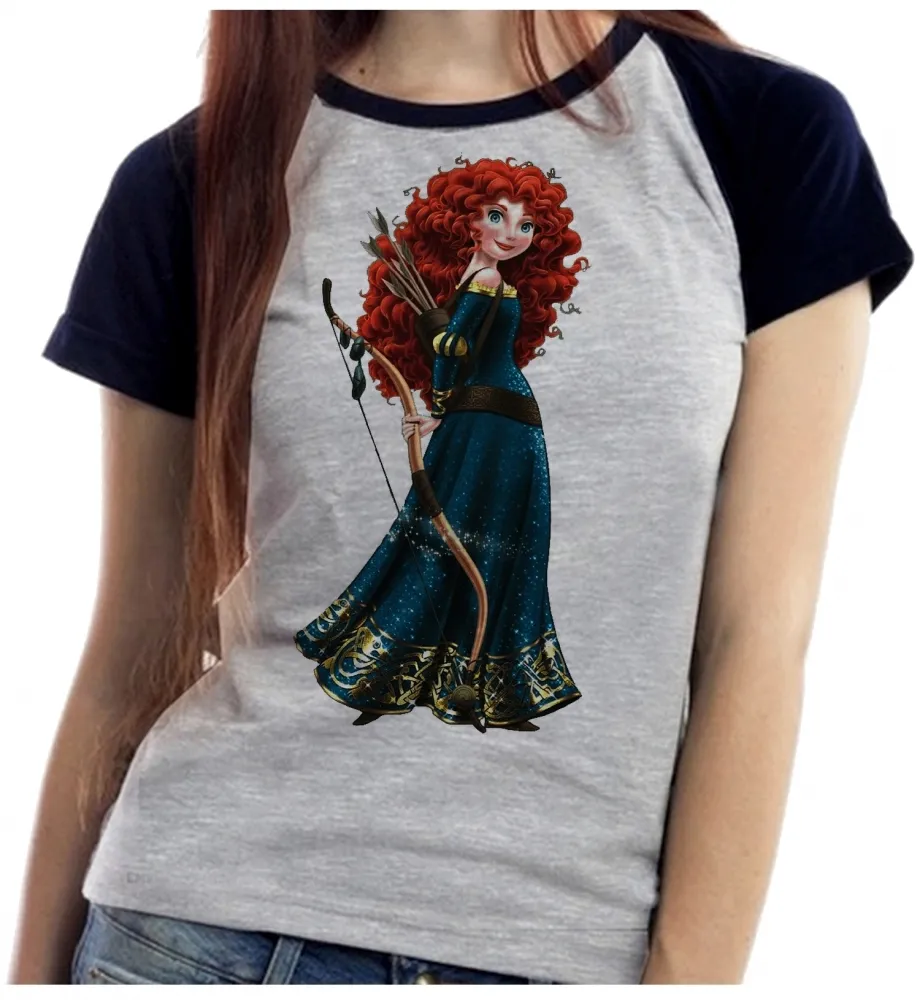 Baby look blusa feminina ou Camiseta Meridia Valente princesa disney