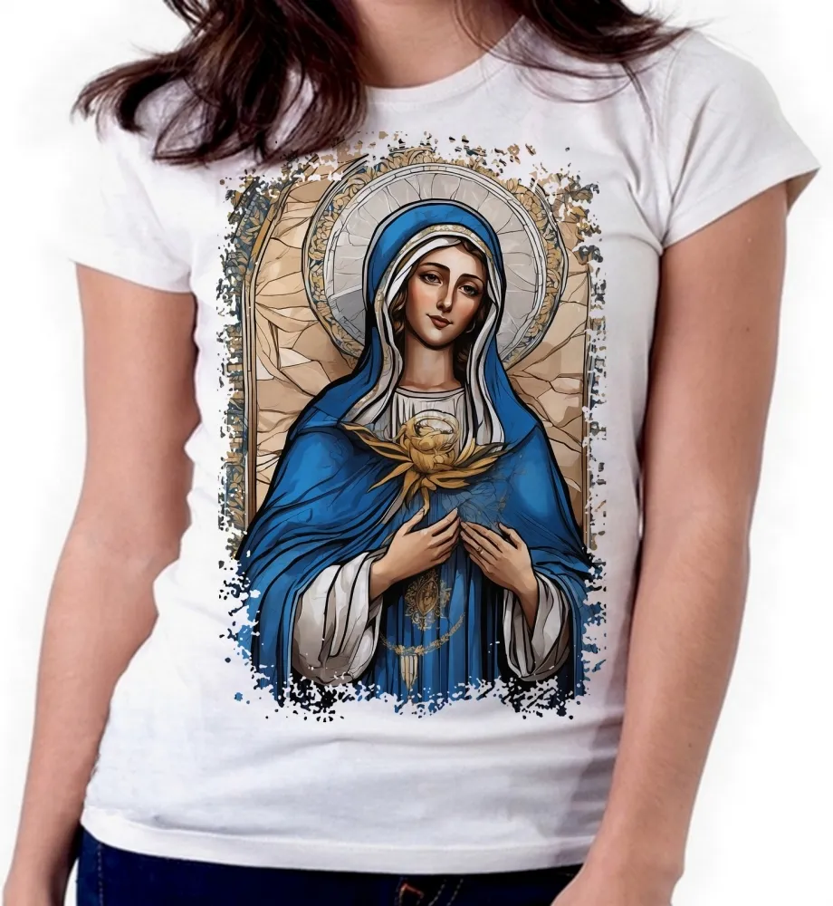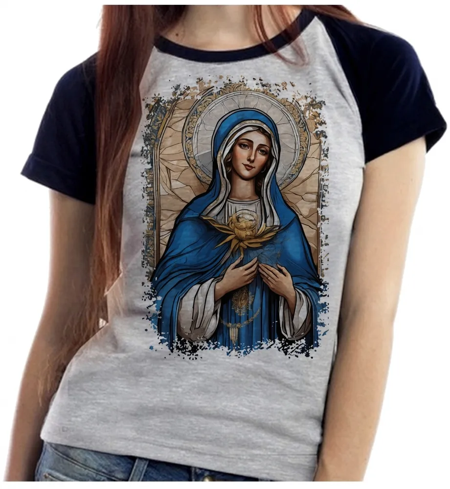Baby look blusa feminina ou Camiseta Nossa Senhora Aparecida Jesus Mãe
