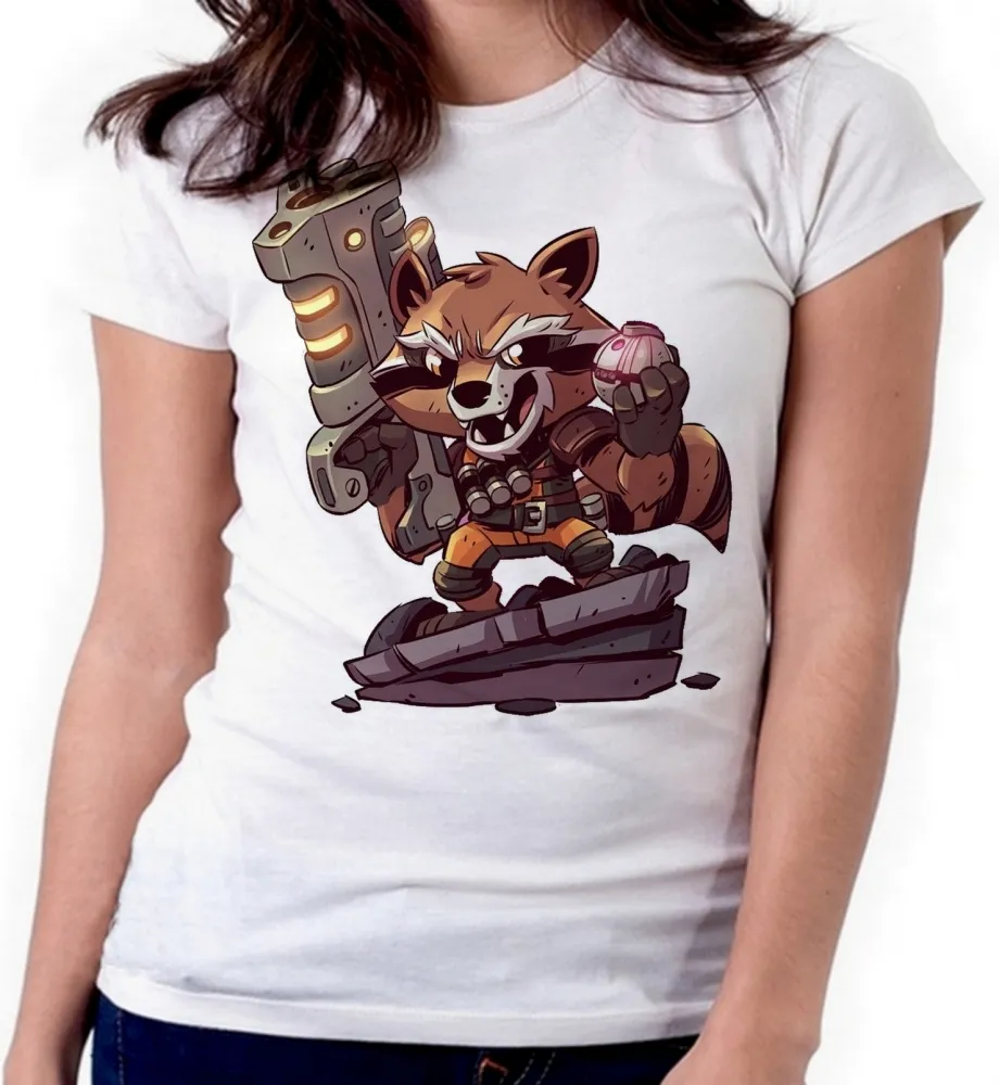 Baby look blusa feminina ou Camiseta Rocket guardioes galaxia hero
