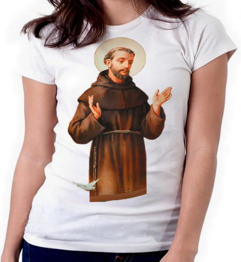 Baby look blusa feminina ou Camiseta São Francisco Jesus Cristo