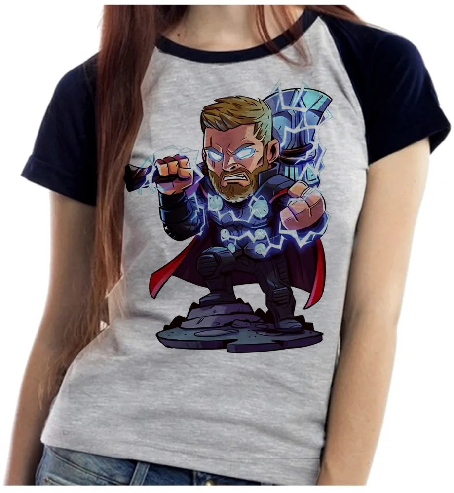 Baby look blusa feminina ou Camiseta thor martelo vingadores hero