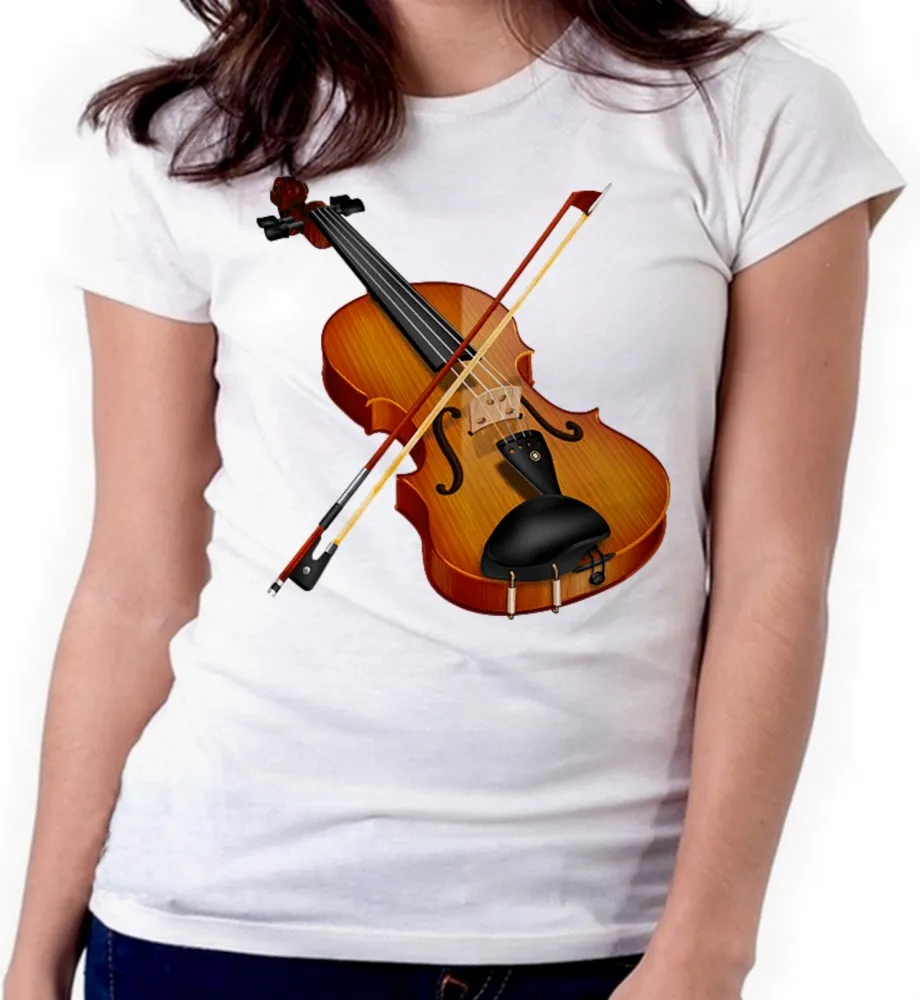 Baby look blusa feminina ou Camiseta Violino musica classica instrumento