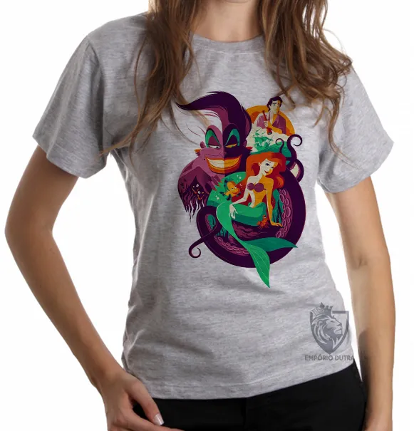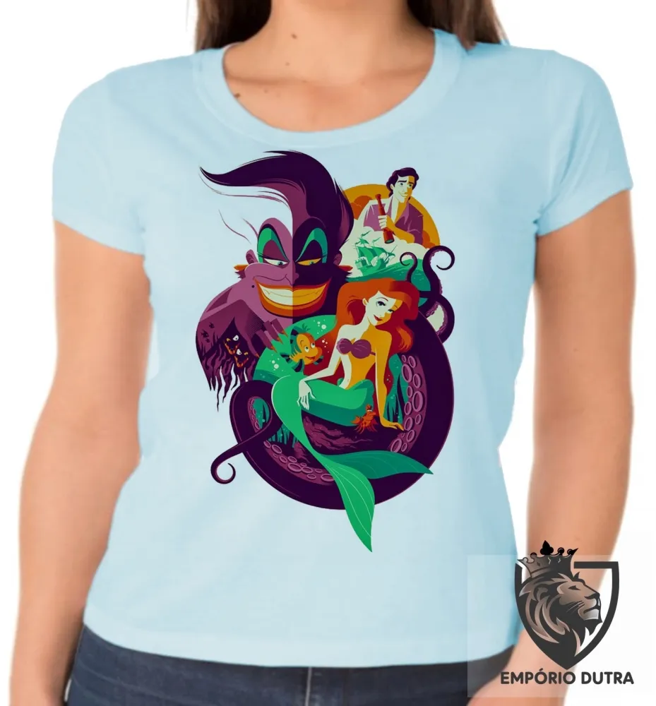 Baby look blusa feminina Pequena Sereia ariel Imagem