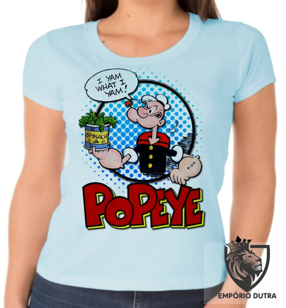 Baby look blusa feminina Popeye espinafre lata redondo olivia