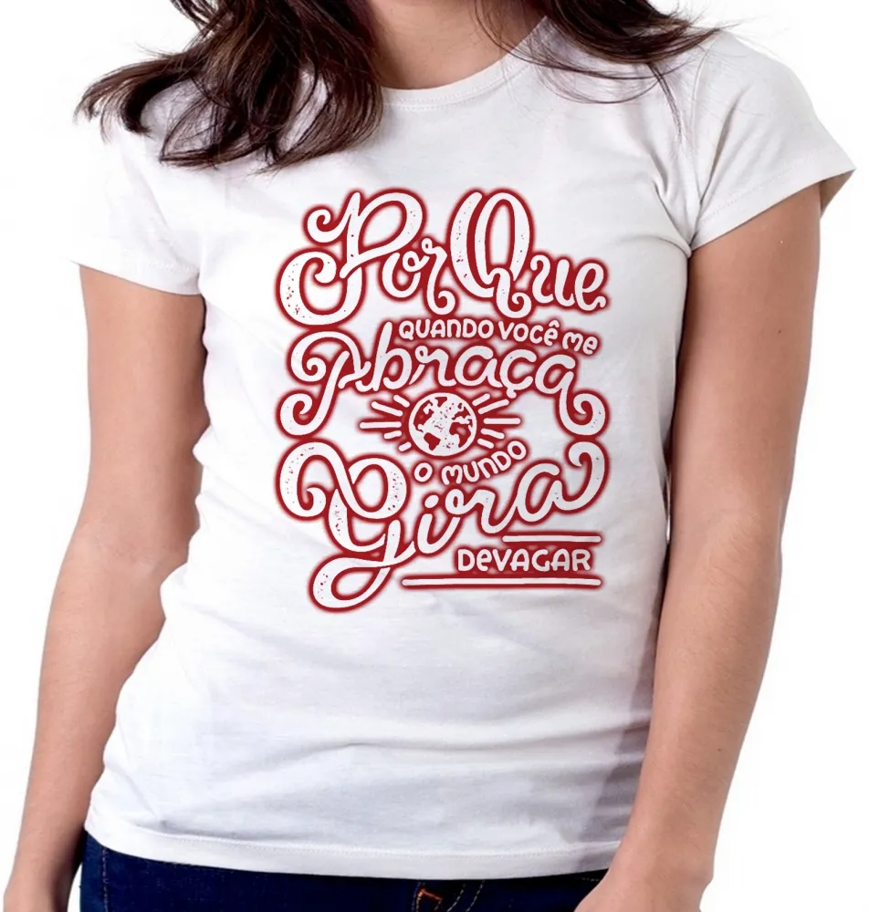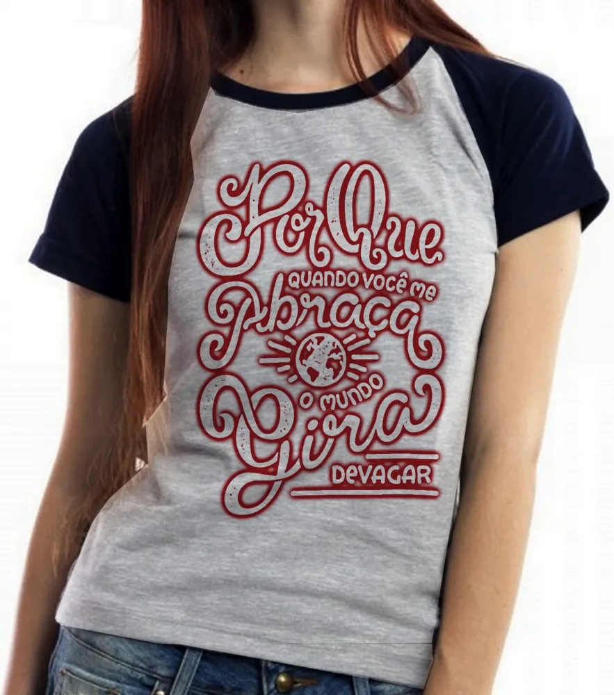 Baby look blusa feminina Porque quando você abraça mundo gira