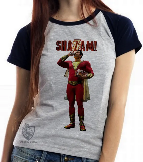 Baby look blusa feminina Shazam heroi Imagem
