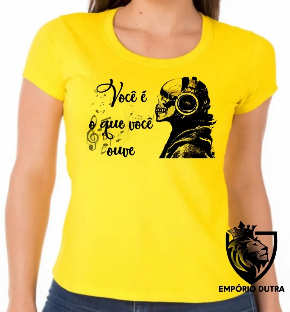 Baby look blusa Feminina Você é o que você ouve musica caveira Imagem