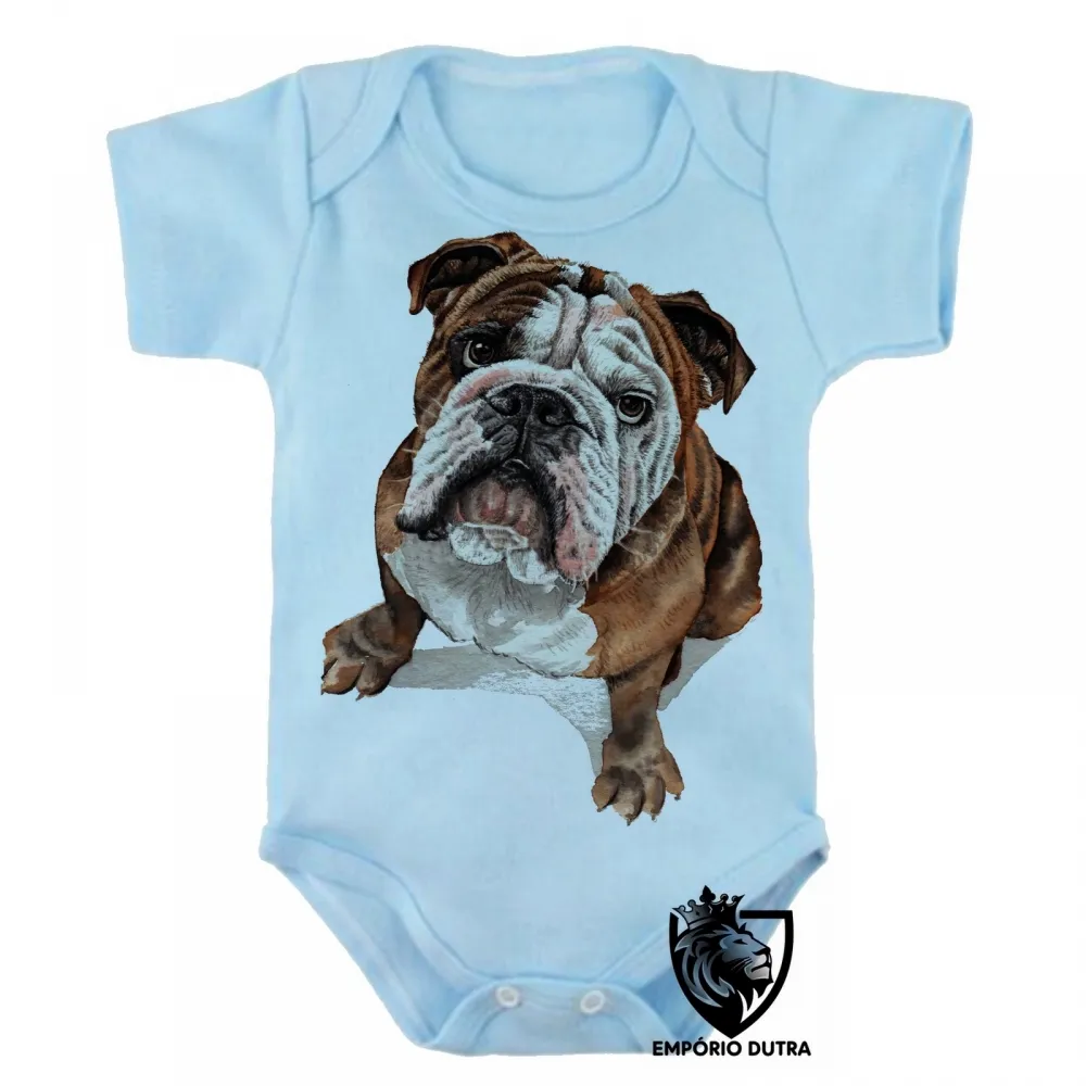 Body Bebê Infantil cachorro bulldog Buldogue raça canina