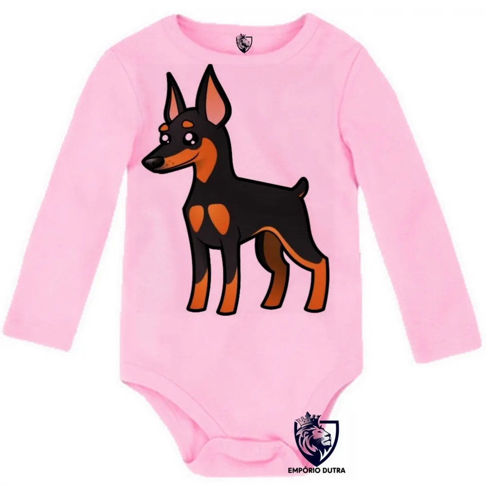 Body Bebê Infantil cachorro cão dog pinscher raça canina