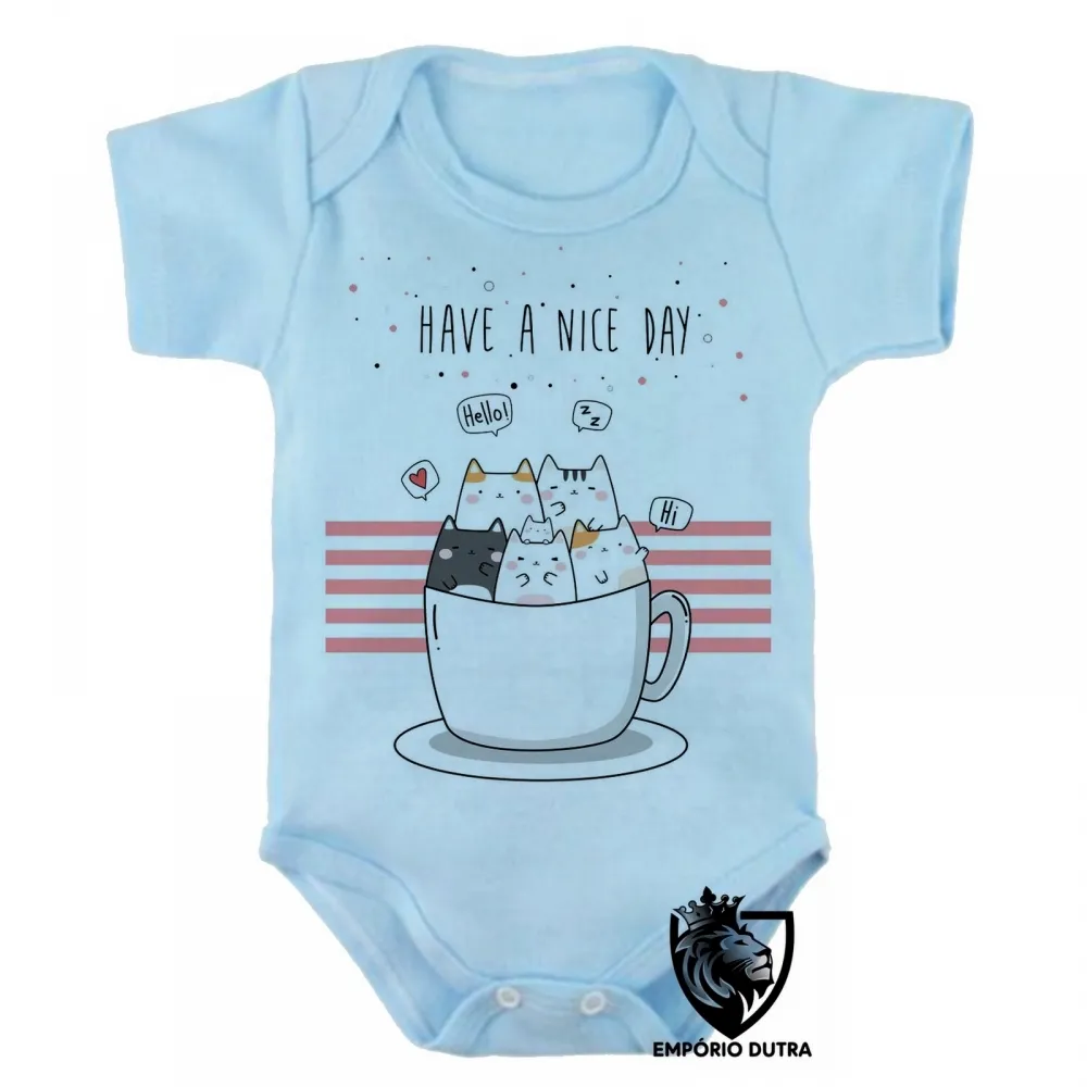 Body Bebê Infantil Gatinhos Have a nice day gato cat Imagem