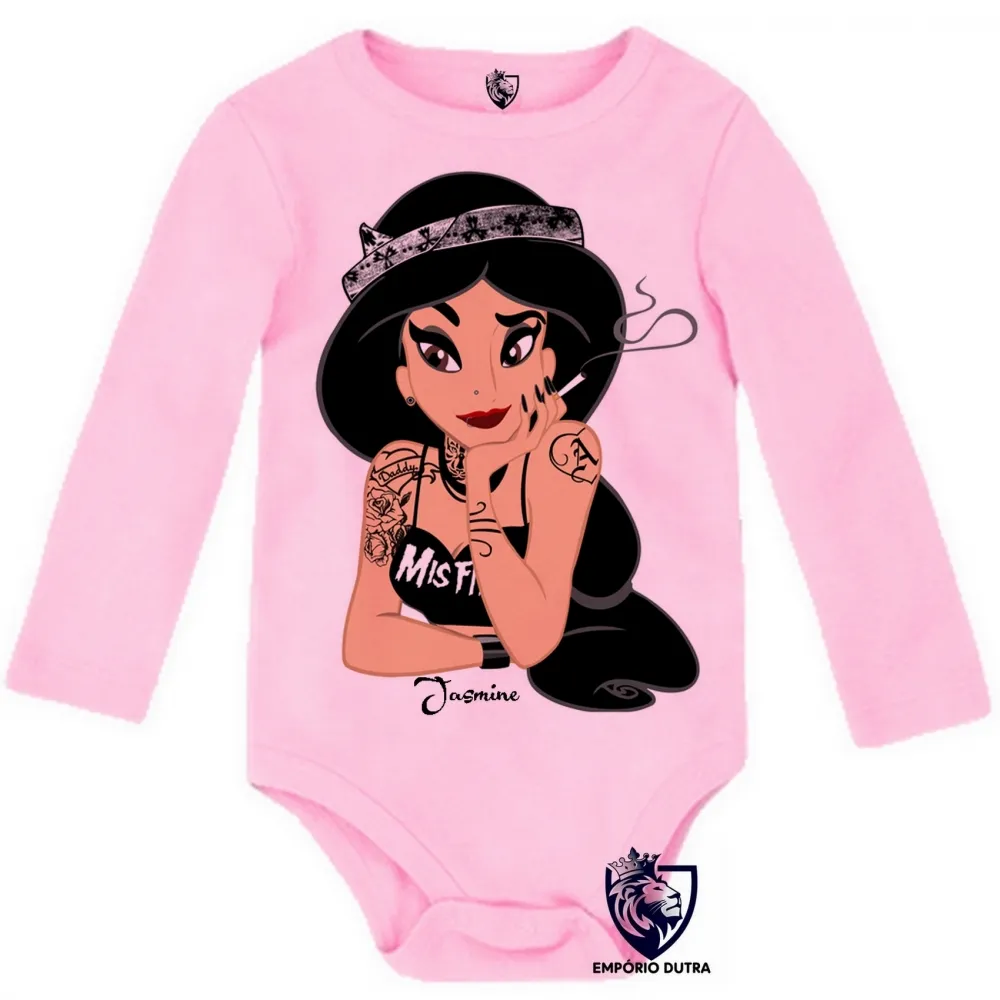 Body Bebê Infantil Jasmine Aladim fumando