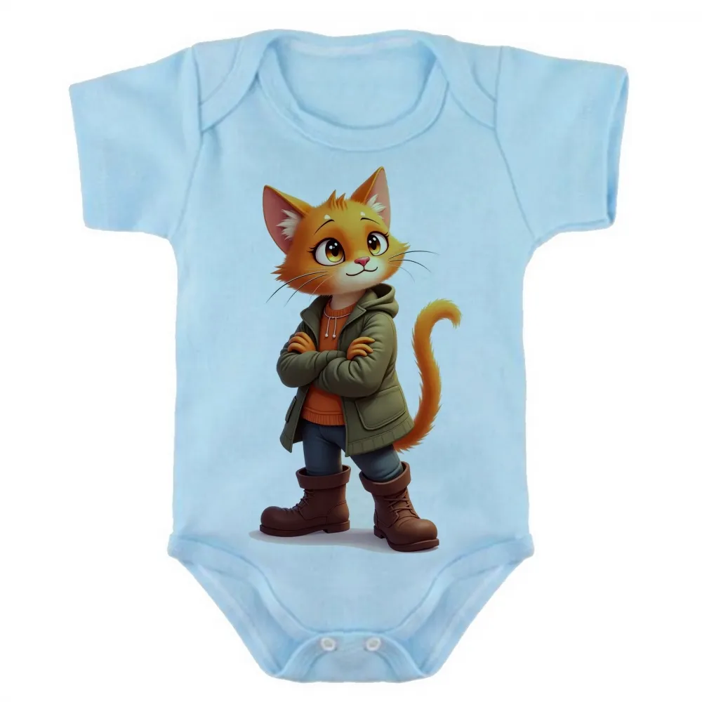 Body Bebê Infantil roupa criança Gato de botas colorido