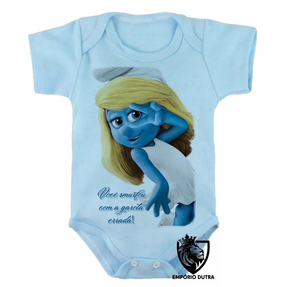 Body Bebê Infantil Smurfette você smurfou smurfs azuis