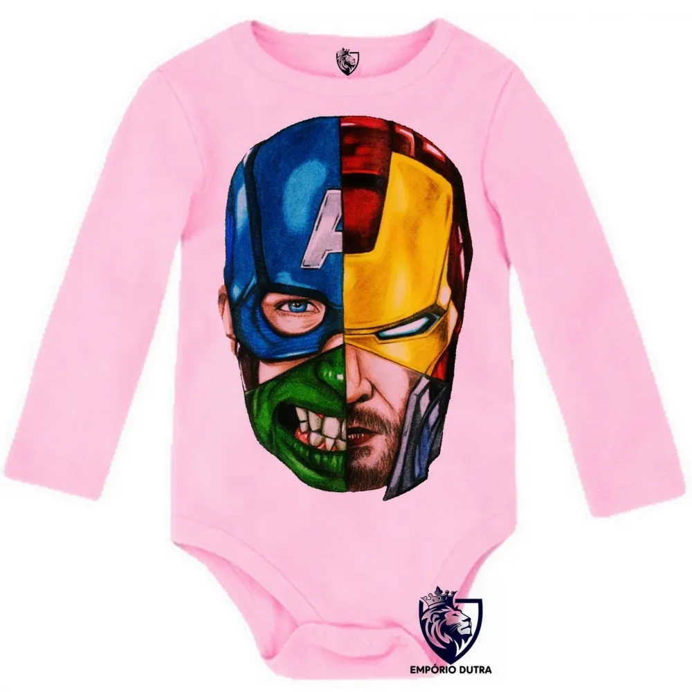 Body Bebê Infantil vingadores Cabeças hulk thor capitão