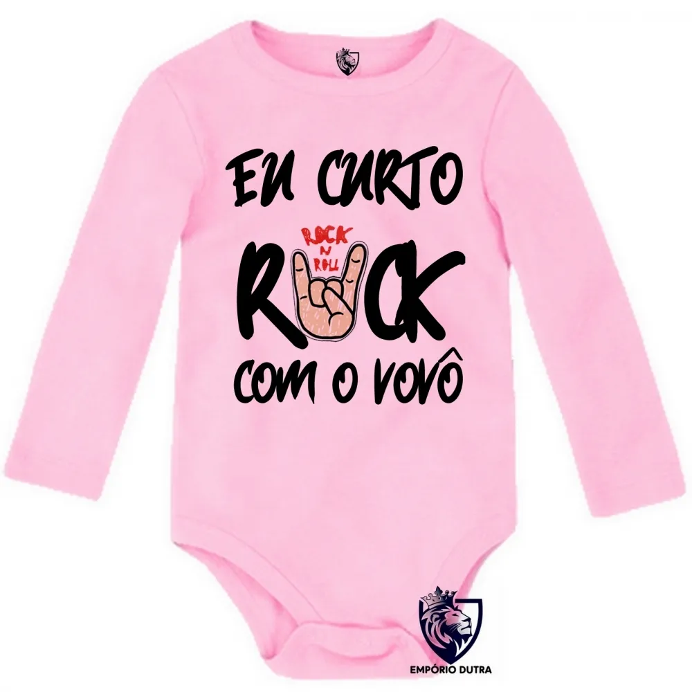 Body Bebê Infantil Eu curto rock com o vovô Imagem