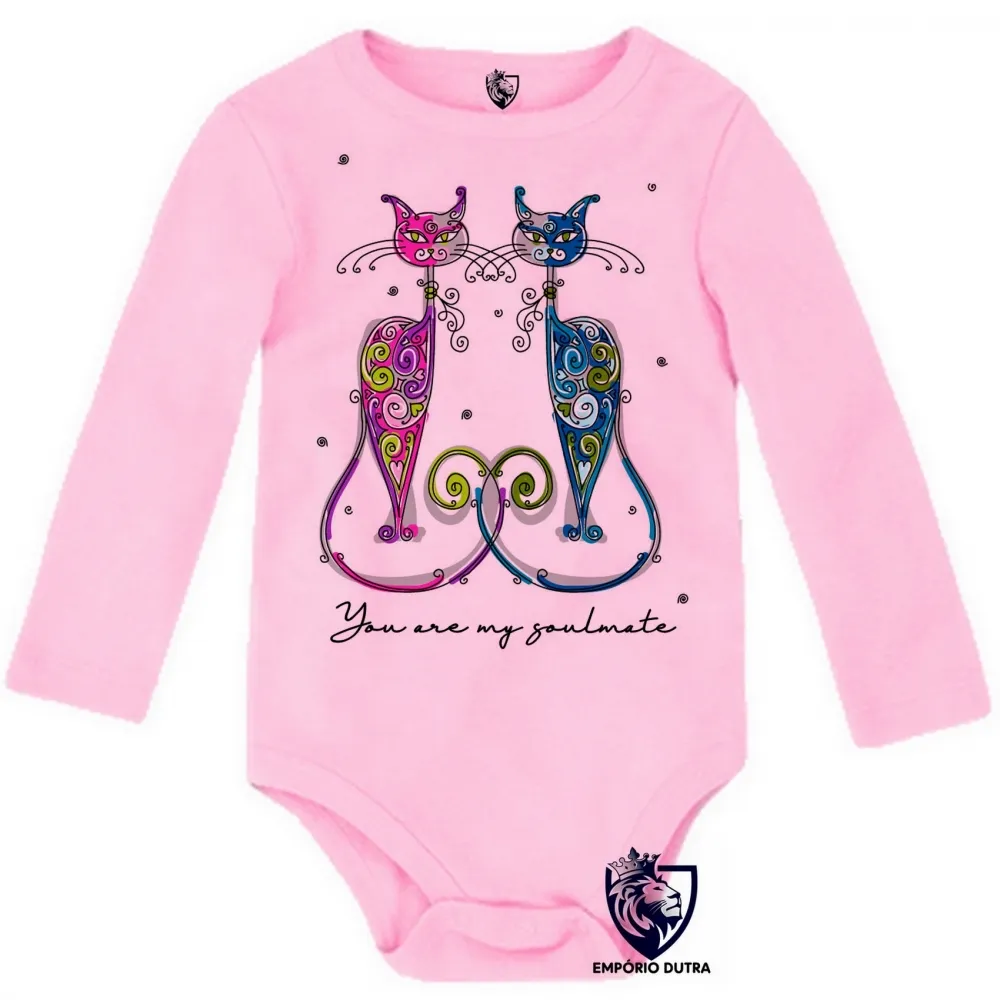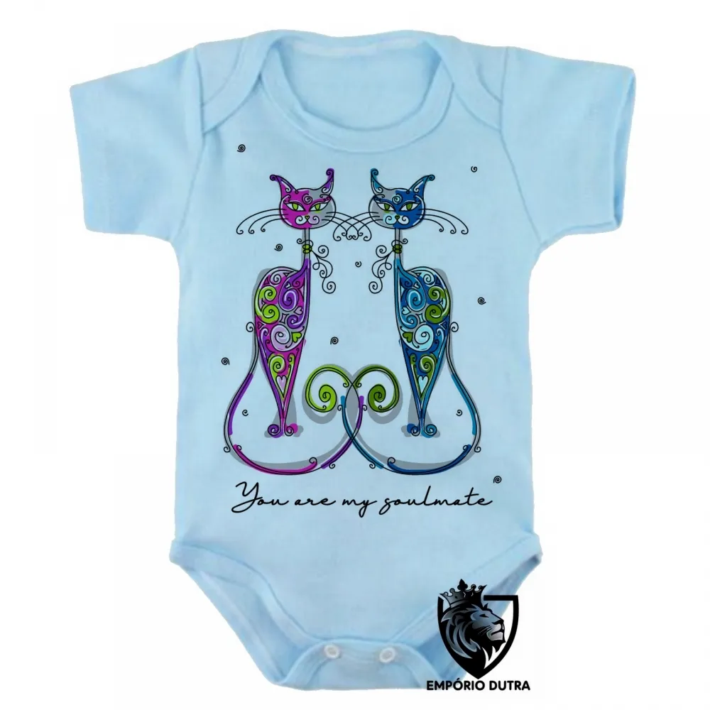 Body Bebê Infantil Gatos you are my soulmate cat Imagem
