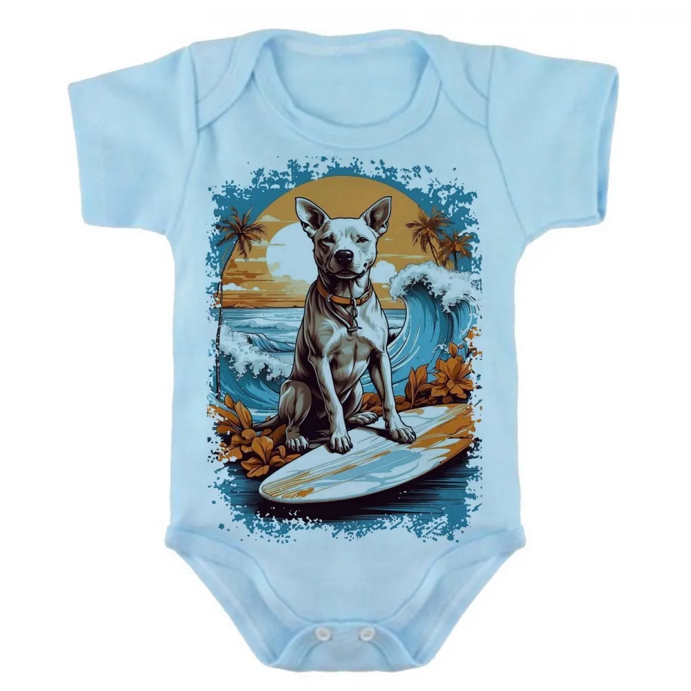 Body Bebê Infantil roupa criança cachorro pit bull praia surf Imagem