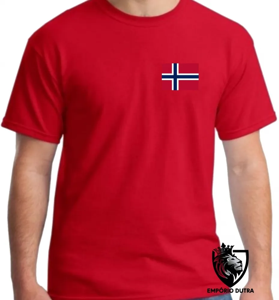 Camiseta adulto ou infantil Bandeira Noruega escandinavo