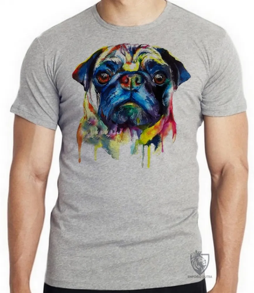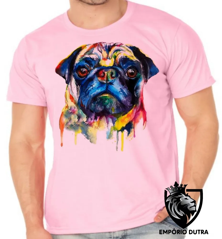 Camiseta adulto ou infantil cachorro cão dog pug colorido pintura color