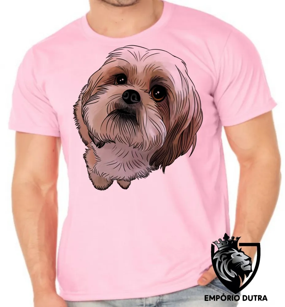 Camiseta adulto ou infantil cachorro cão dog Shih tzu raça fofo lindo
