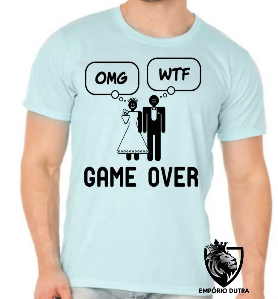 Camiseta adulto ou infantil Casamento game over engraçado Imagem