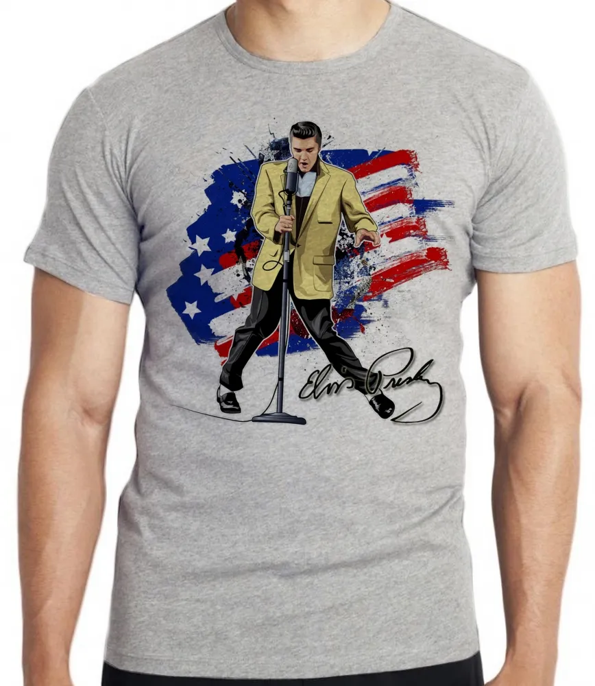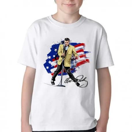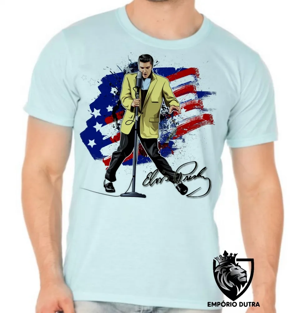Camiseta adulto ou infantil Elvis Presley bandeira EUA musica rock