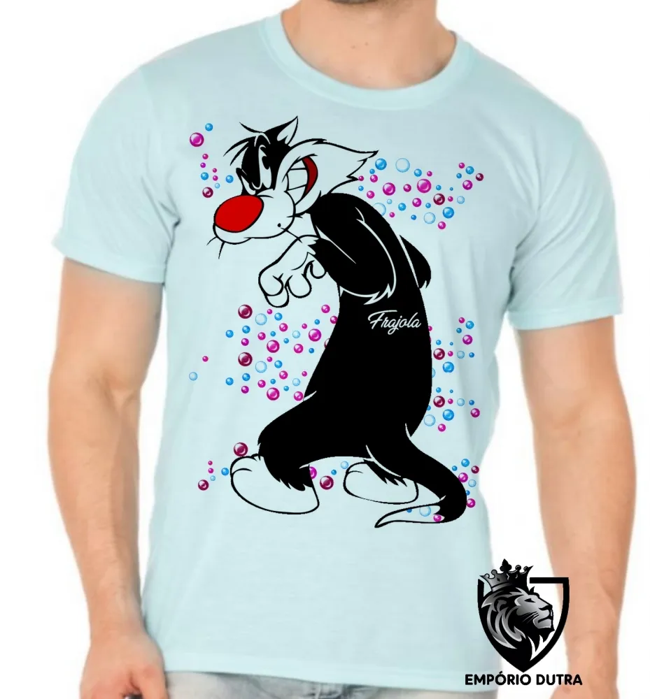 Camiseta adulto ou infantil Frajola bolinhas gato cat piu