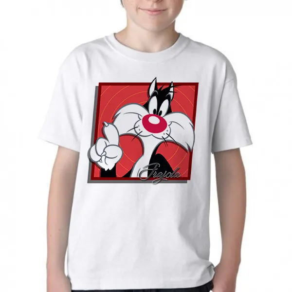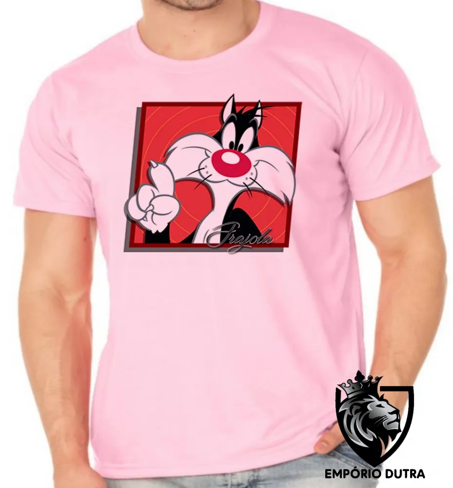 Camiseta adulto ou infantil Frajola gato cat quadrado vermelho