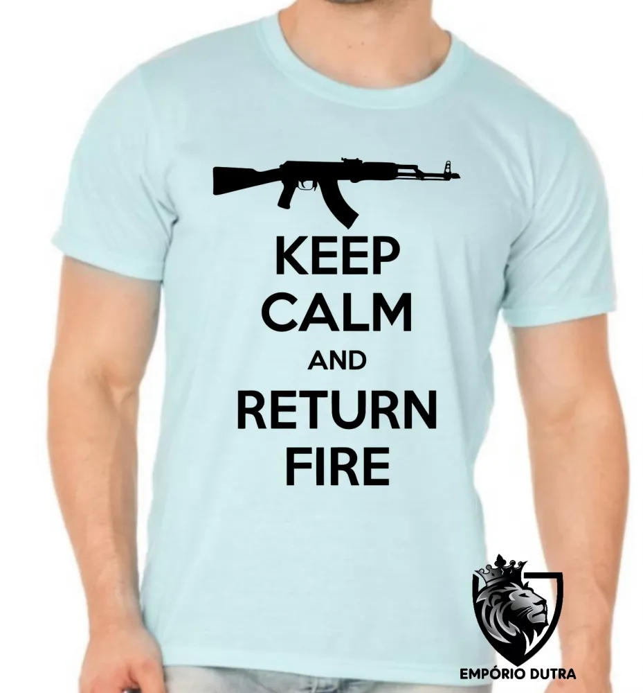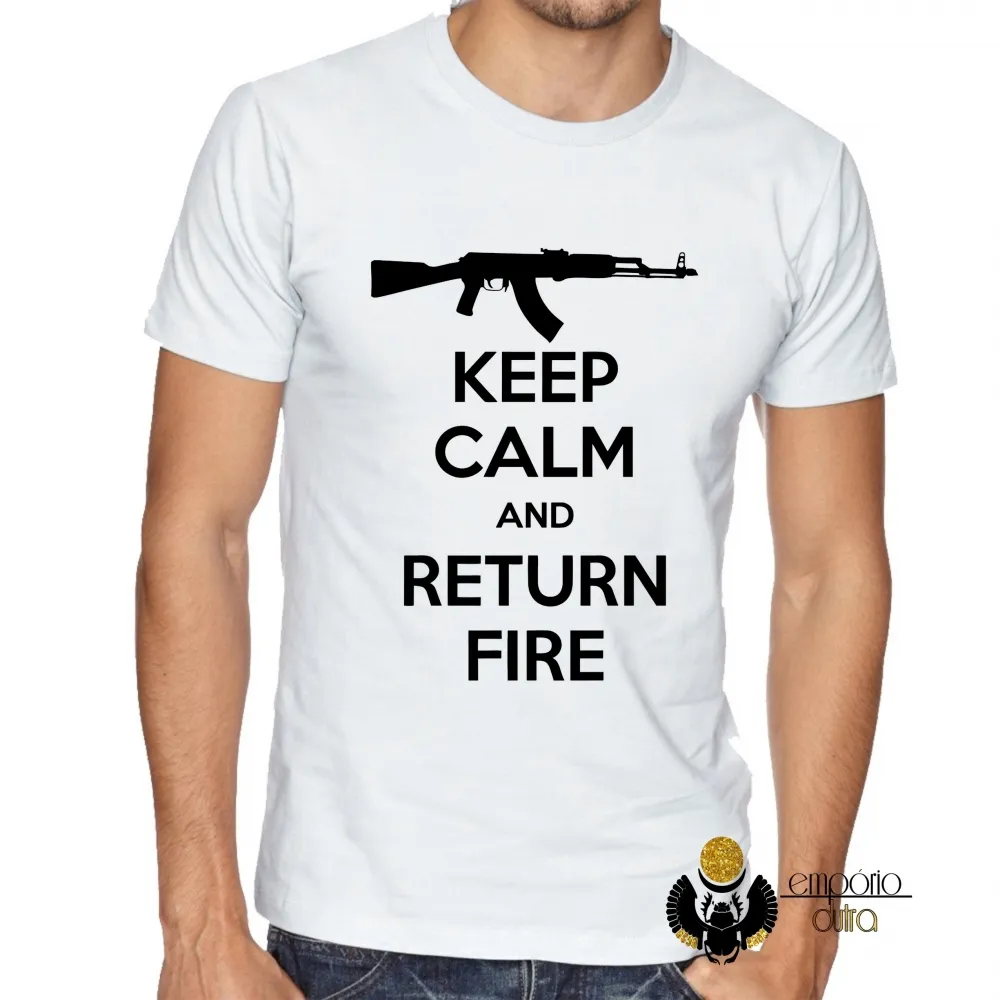 Camiseta adulto ou infantil Fuzil arma pistola ak 47 keep calm